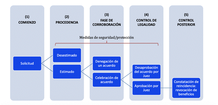 La investigación empieza bosquejando las etapas de aplicación de la colaboración tomando como base la normativa y jurisprudencia disponible. Se puede observar las etapas en el siguiente diagrama: