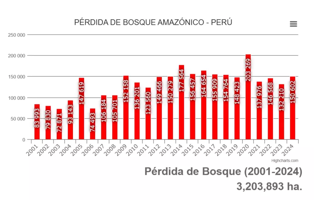 Desde inicios del siglo XXI, el Perú ha perdido una extensión de bosques comparable al departamento de Cajamarca. La deforestación sigue avanzando sin señales de desaceleración.